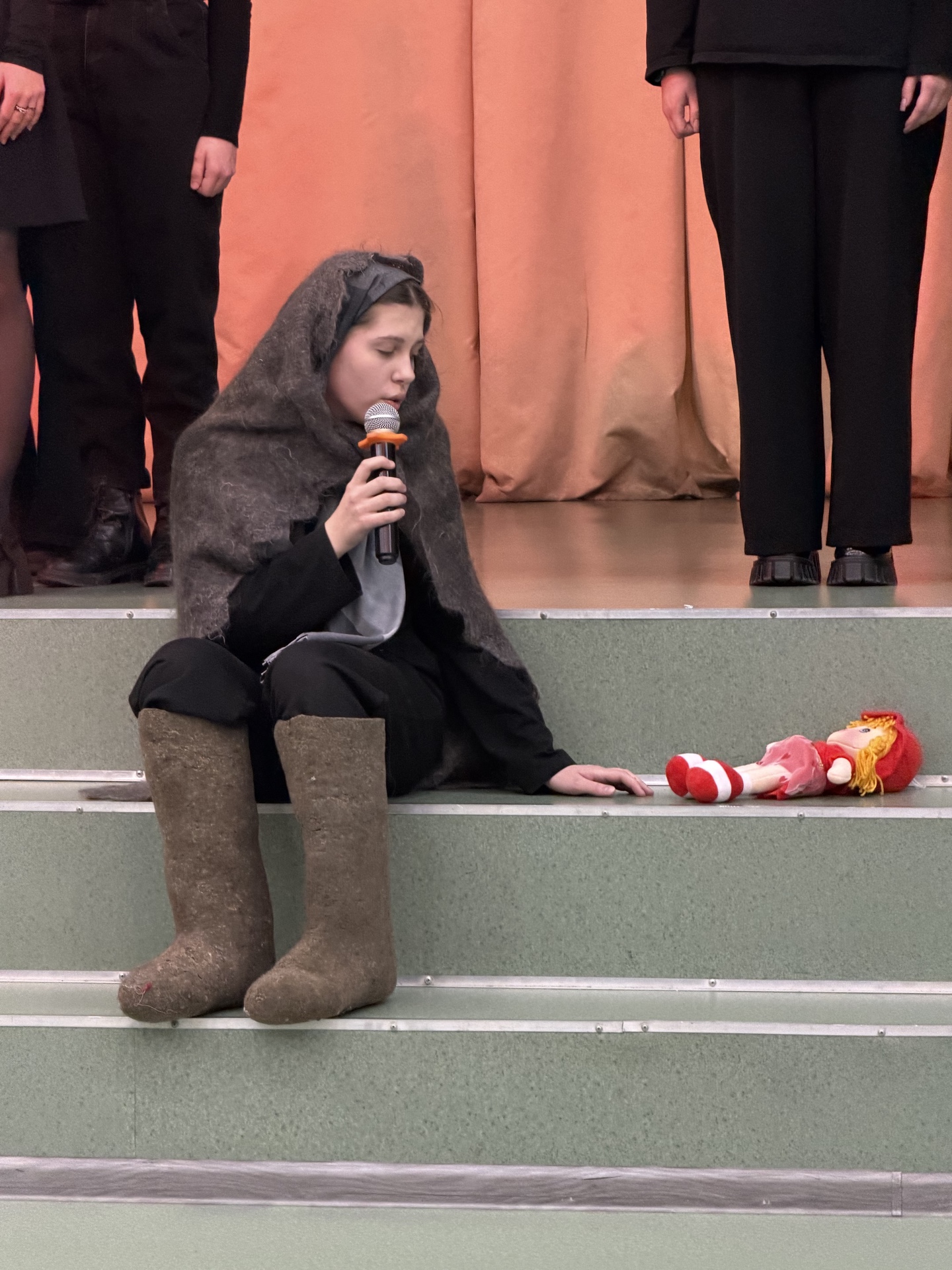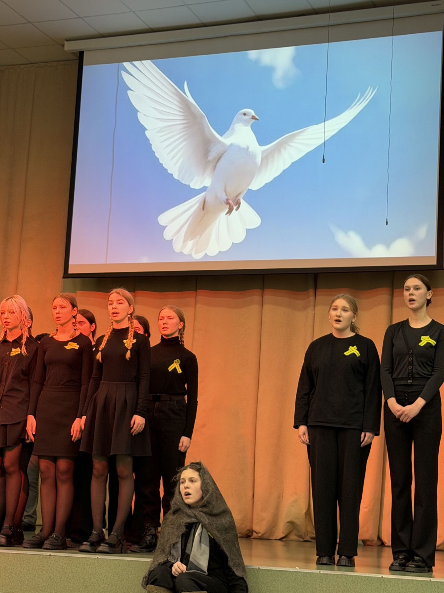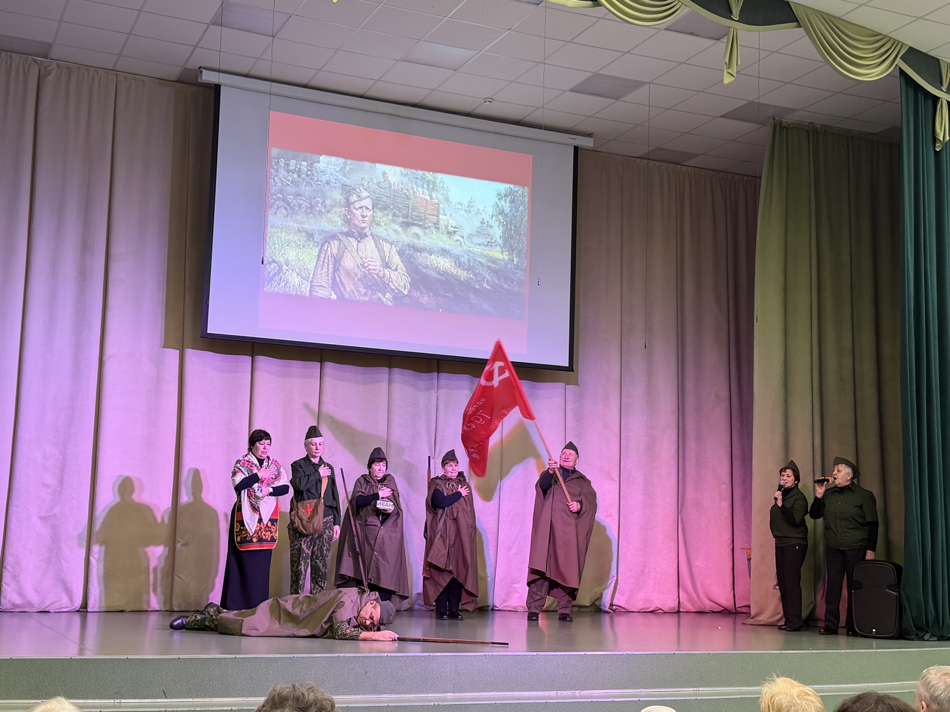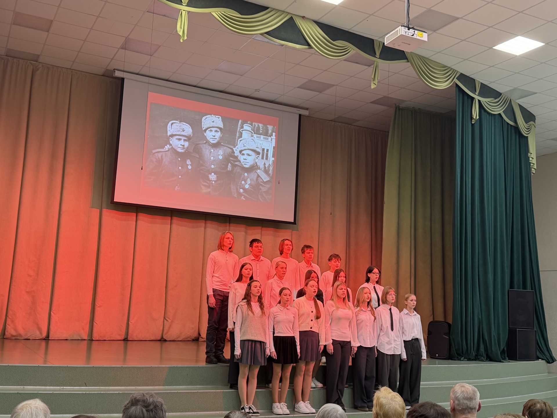 На концерте звучали стихи, песни, творческие зарисовки, посвященные блокадной теме. Яна Тихомирова, член ТИК, вместе с обучающимися Волосовской СОШ №2 Ксензовой Софьей, Луньковой Марией и Ногтоедовой Яной исполнили театральную композицию «Воспоминание из прошлого».